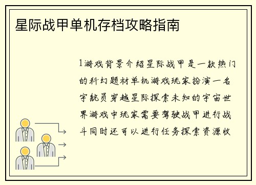 星际战甲的存档系统是游戏中非常重要的一部分,它可以帮助玩家记录游戏进度,保证游戏数据的安全性,并且可以在需要的时候随时加载存档继续游戏。存档系统通常包括存档位置选择、存档名称设定和存档管理等功能。